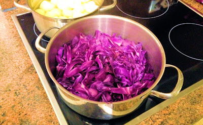 Dazu hatte ich für die Beilagen einen roten Spitzkohl und Kartoffeln.